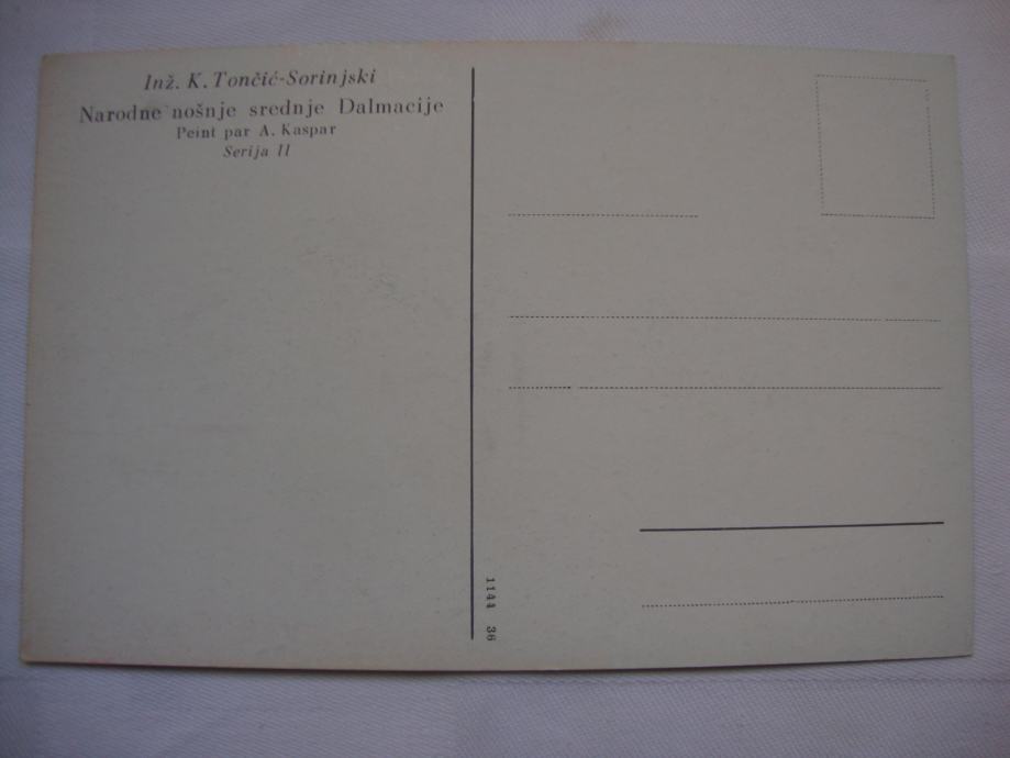 K.TONČIĆ-SORINJSKI "Narodne nošnje Dalmacije"-dopisnica 1900-1910