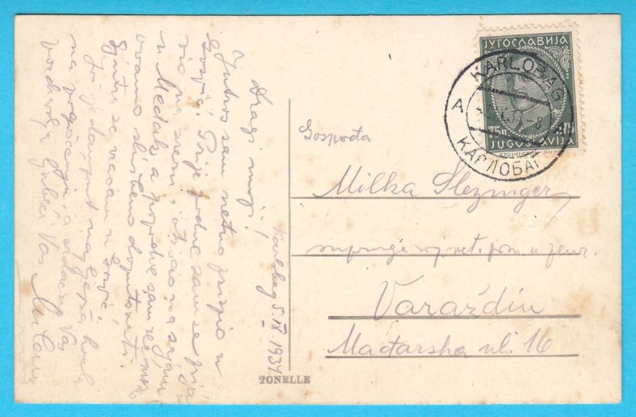 Stara predratna razglednica Karlobaga, putovala 1934. godine.