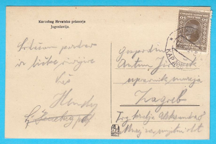 KARLOBAG - Ratni brod u luci * stara predratna razglednica, putovala
