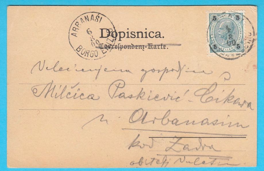 Prekrasna stara razglednica Kaštel Novog, putovala 1900-te godine u Arbanasi (Zadar).