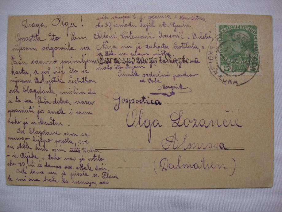 BISCHOFLACK IN KRAIN - putovala 1914. godine iz ŠKOFIJA LOKA u OMIŠ (ALMISSA)
