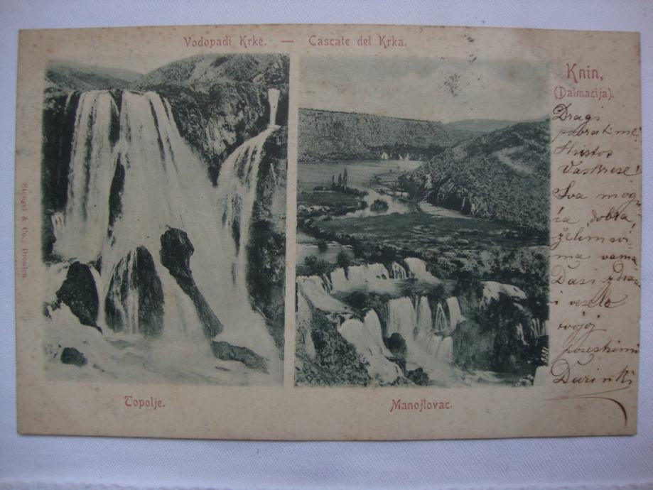 Vodopadi Krke Topolje,Manojlovac -Dalmacija - Knin dopisnica u izvrsnom stanju putovala za Zadar 1900. godine