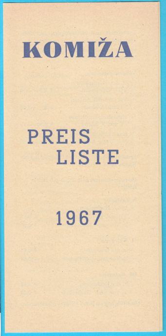 Stara ex Jugoslavija turistička brošura (prospekt) Komiže plus dodatak sa cijenikom za 1967. godinu.