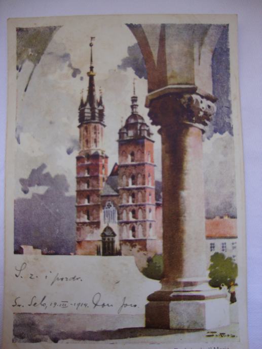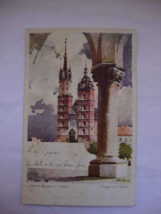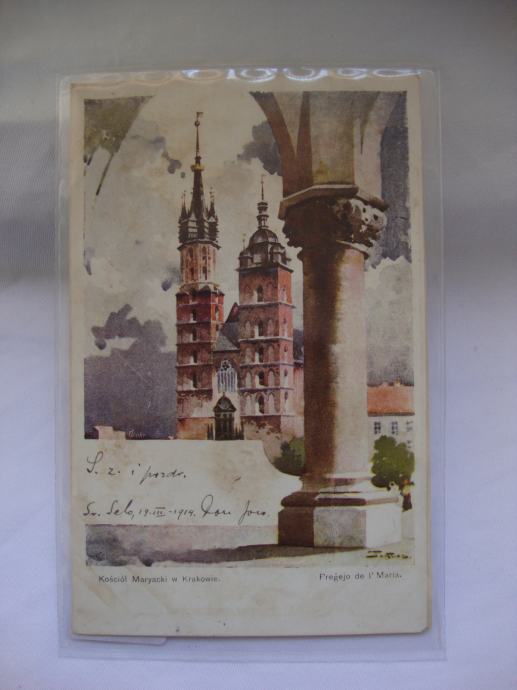KOSCIOL MARYACKI w KRAKOW 1914. postcard - ART DEOPISNICA ,POTPISANA
