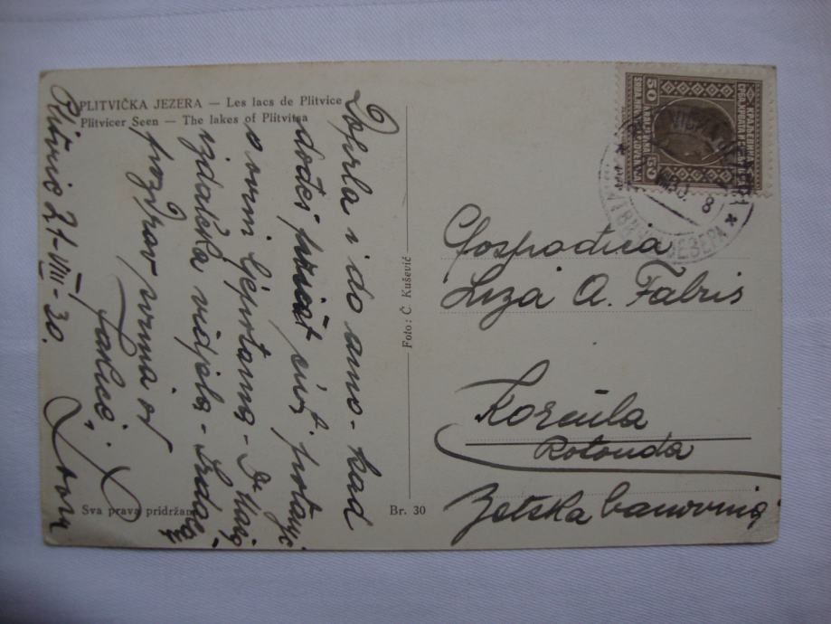 NA KOZJAKU - PLITVIČKA JEZERA - 1930.god.-Razgeldnica putovala