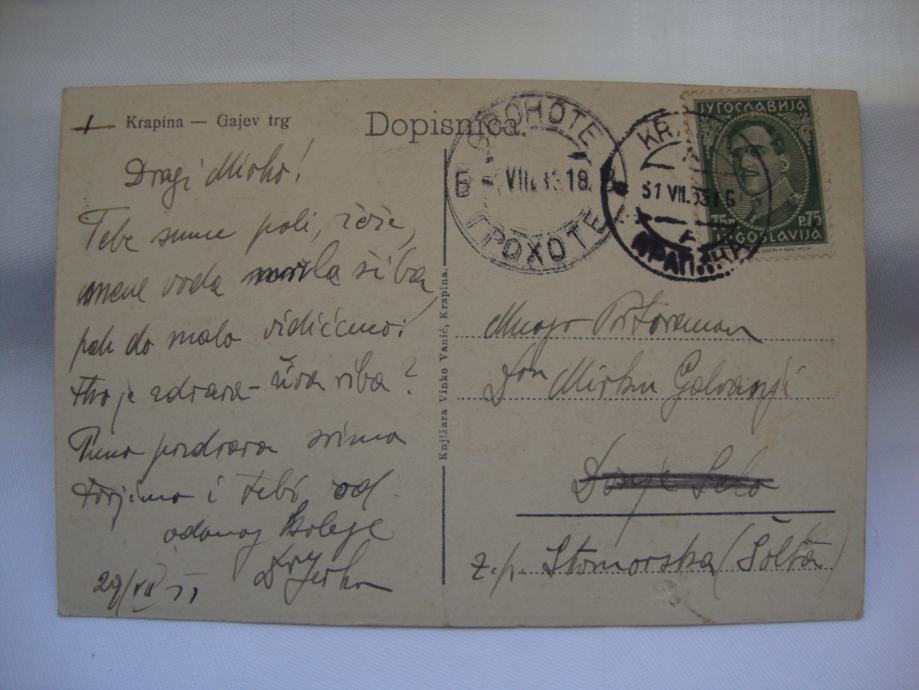Stara dopisnica GAJEV TRG u KRAPINI - putovala za otok Šoltu 1918. godine u izvrsnom stanju