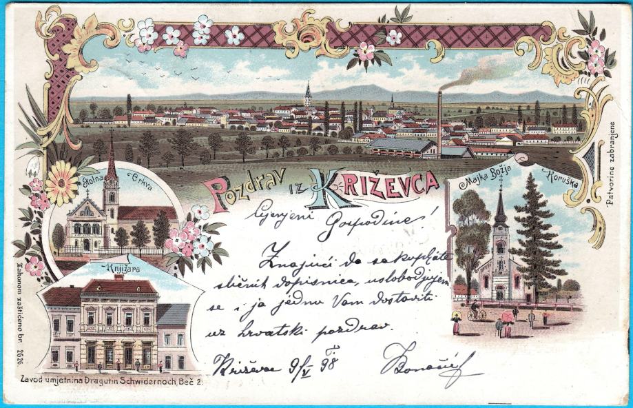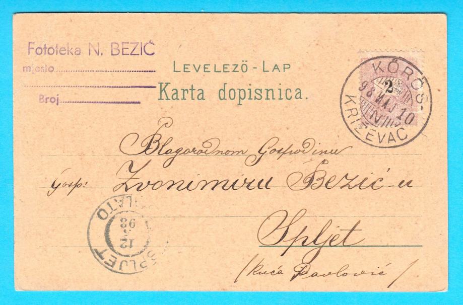Prekrasna stara i vrlo rijetka razglednica Križevaca, putovala daleke 1898. godine u Spljet ( Split ).