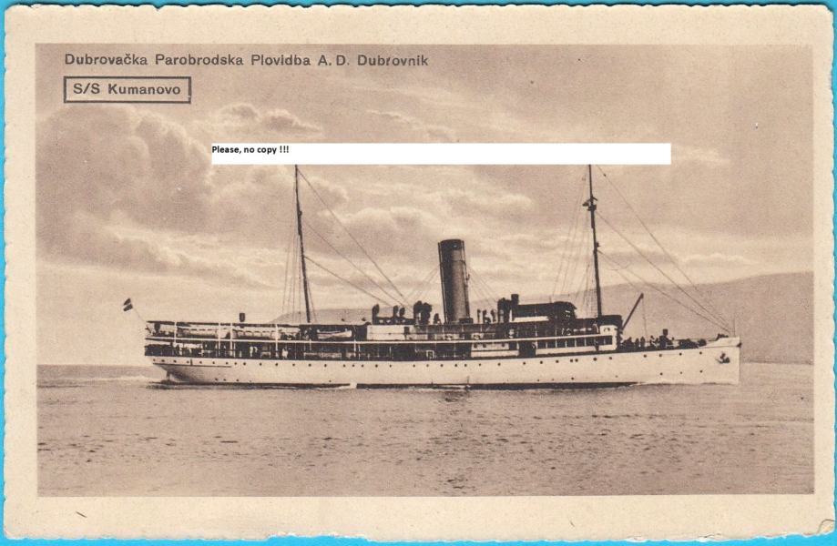 S/S KUMANOVO Dubrovačka Parobrodska Plovidba Dubrovnik razglednica 30s