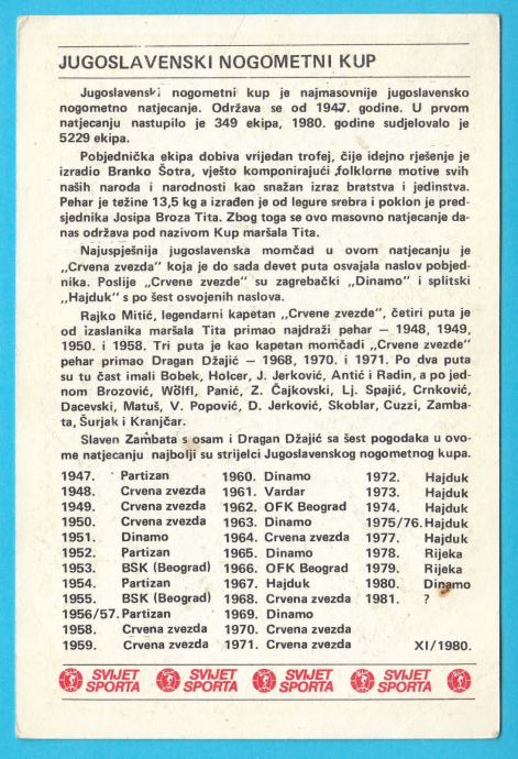 Vrlo lijepa stara nogometna kartica iz bivše Jugoslavije, izlazila 1980-1981. godine.