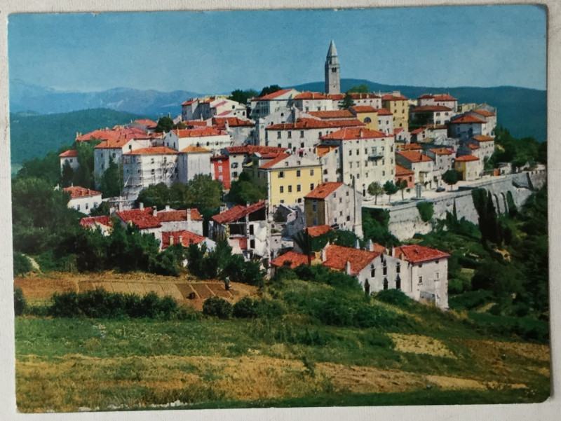 Labin: stara razglednica pogled na Stari grad i obrađeno zemljište