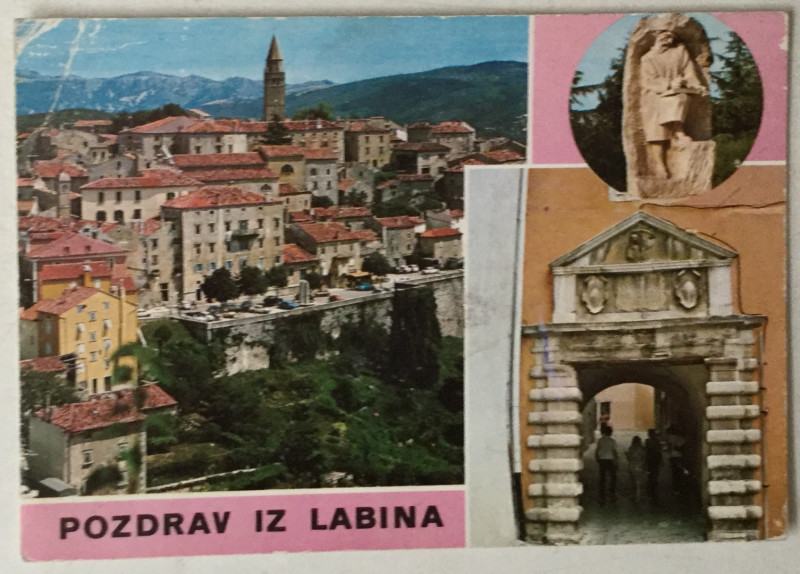 Labin: stara razglednica Pozdrav iz Labina tri motiva s rozim obrubom
