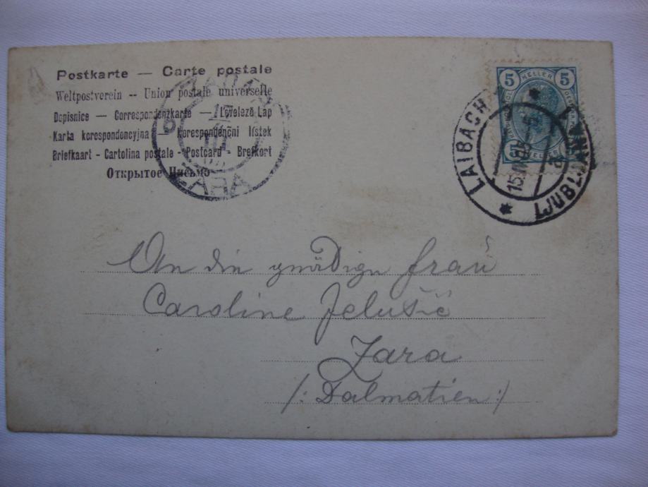 Grussova dopisnica Ljubljane crno bijela putovala za Zaru (Zadar) 1905. godine u odlićnom stanju