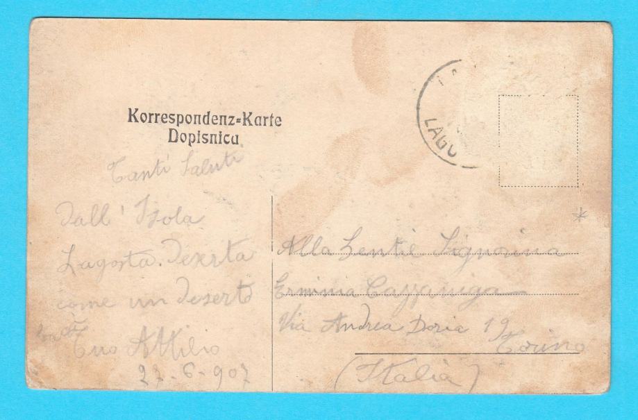 Prekrasna stara austro-ugarska razglednica Lastova, putovala davne 1907. godine u Torino (Italija).