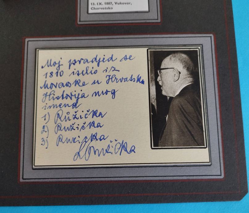 Originalni rukopis i potpis slavnog hrvatskog nobelovca Lavoslava Ružičke.