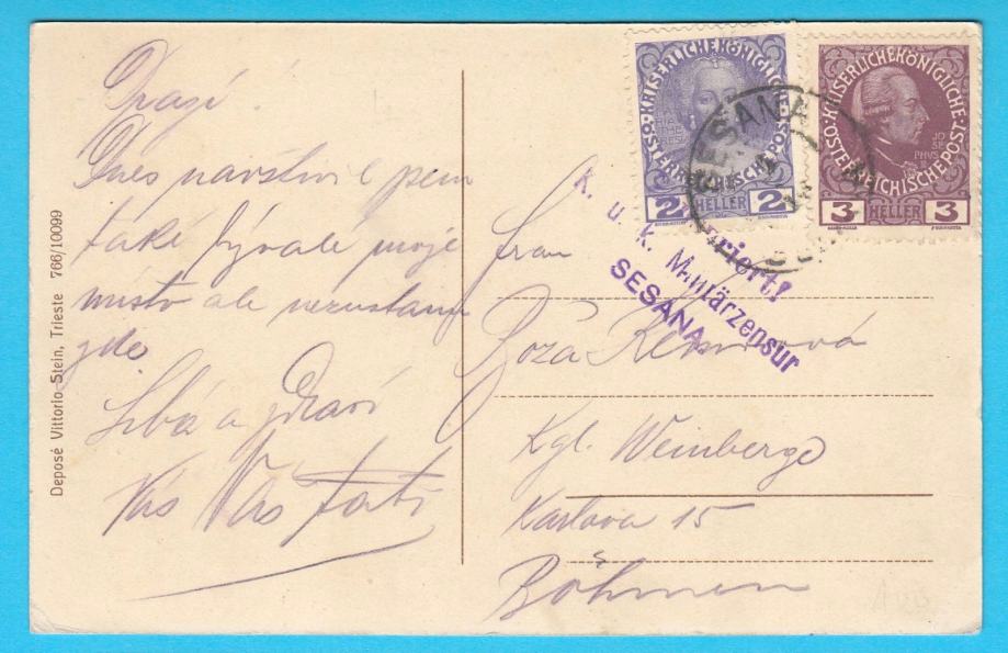 Putovala sa austro-ugarskom cenzurom Sežana (Sesana) - Slovenija.