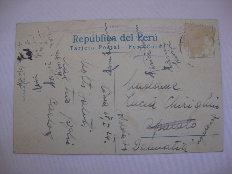 Stara dopisnica LIMA iz REPUBLICA DEL PERU putovala 1924. godine za Spalato