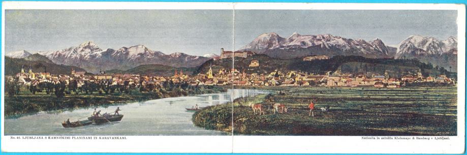 Vrlo lijepa stara dvostruka (dupla) razglednica Ljubljane.