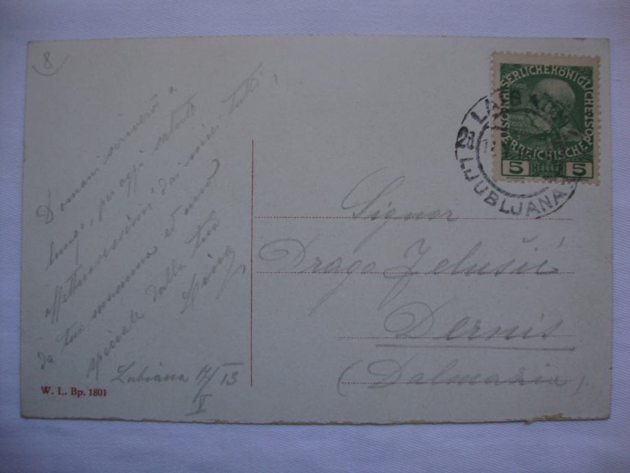 Stara dopisnica Slovenije - Ljubljana putovala za Drniš 1913.godine u odličnom stanju