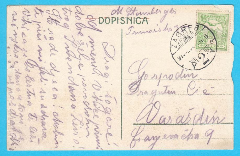 Stara austro-ugarska razglednica (domoljubna), putovala 1914. godine u Varaždin.