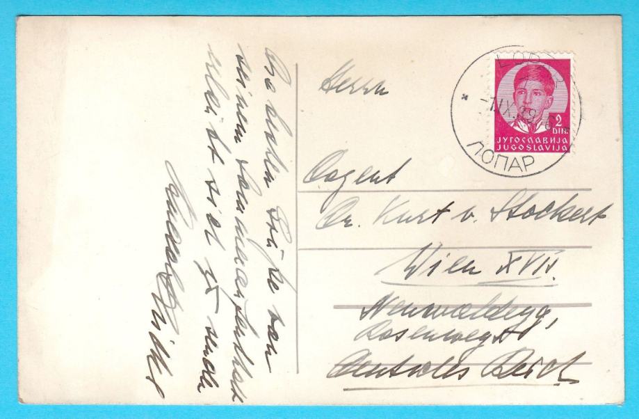 Vrlo lijepa stara razglednica Lopara, putovala 1939. godine iz Lopara u Beč.