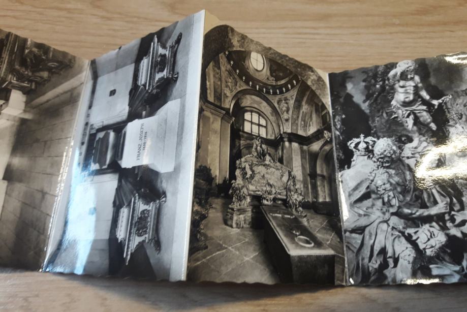 Lot od 10 fotografija carske grobnice Habsburgovaca u Kapucinskom samostanu u Beču, koji je carica Ana osnovala 1617. godine i naredila izgradnju carske grobnice u koju je sahranjeno 12 careva, 19 carica i mnogo drugih članova Habsburške dinastije. Rijetkost i odlično očuvano.