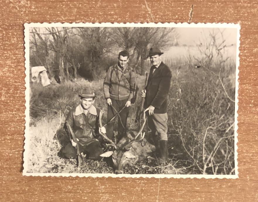 LOVSTVO, TROJICA LOVACA S TROJEFOM, JELEN - STARA FOTOGRAFIJA
