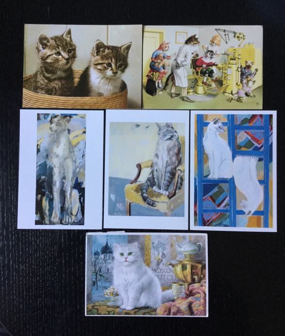 Lot od šest razglednica (dvije nerabljene i četri rabljene) mačaka, sve na slikama. Poštarina prema cjeniku Hrvatske pošte ili osobno preuzimanje. Ne šaljem pouzećem. Kontakt: 0916550922.