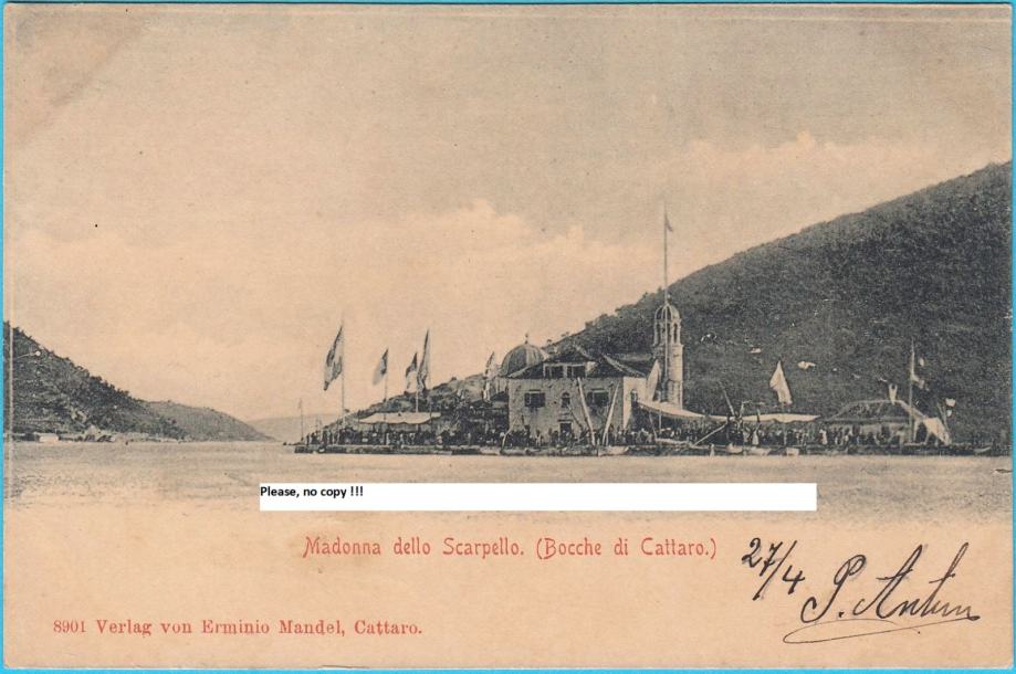 Prekrasna stara austro-ugarska razglednica Gospe od Škrpjela u Boki Kotorskoj.
