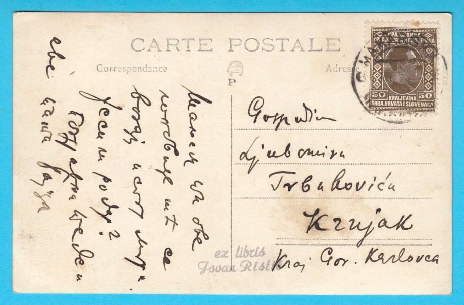Razglednica je putovala iz Makarske u Krnjak (kod Karlovca).