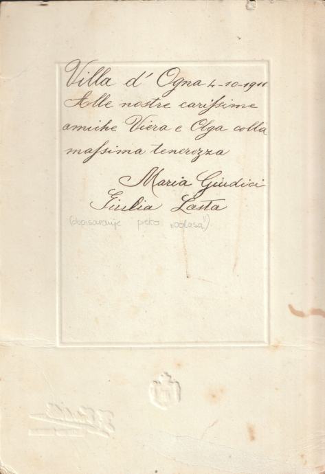 MARIJA GIUDICI I GIULIA LASTA - VILA D OGNA 4.10.1911 g.