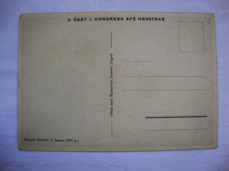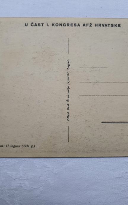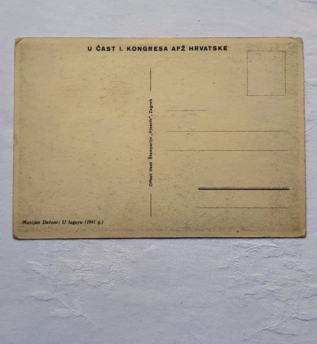 Umjernicka dopisnica 1941. U cast I. kongresa AFŽ HRVATSKE - Dimenzije 10,5 cm x 15 cm -stanje savrseno