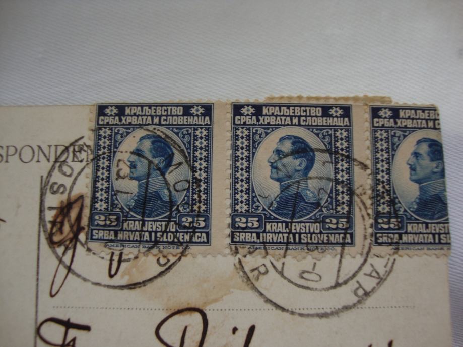 Predivna dopisnica sa 4 markice (jedna na glavoj strani ) i 3 žiga (jedan na glavnoj strani )