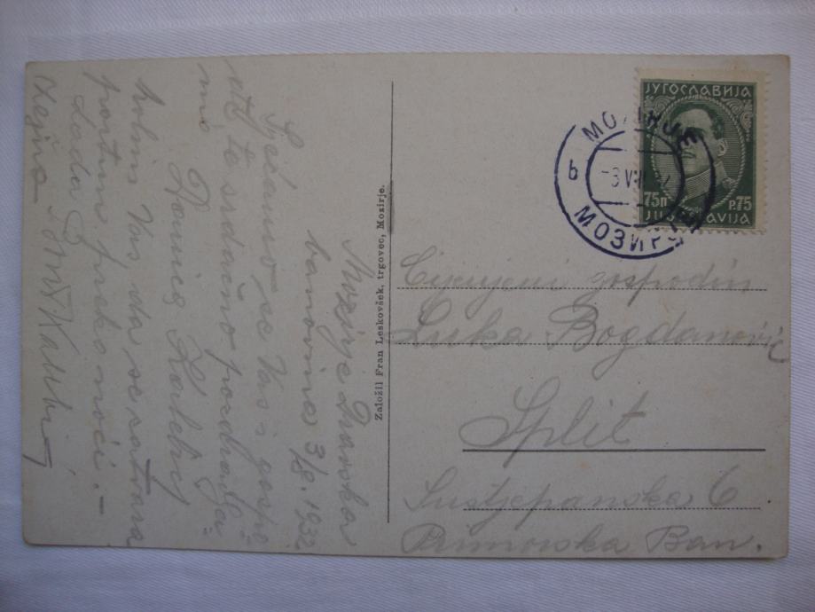 MOZIRJE postcard Slovenia Fran Leskovšek trgovac - 1932. dopisnica SLO