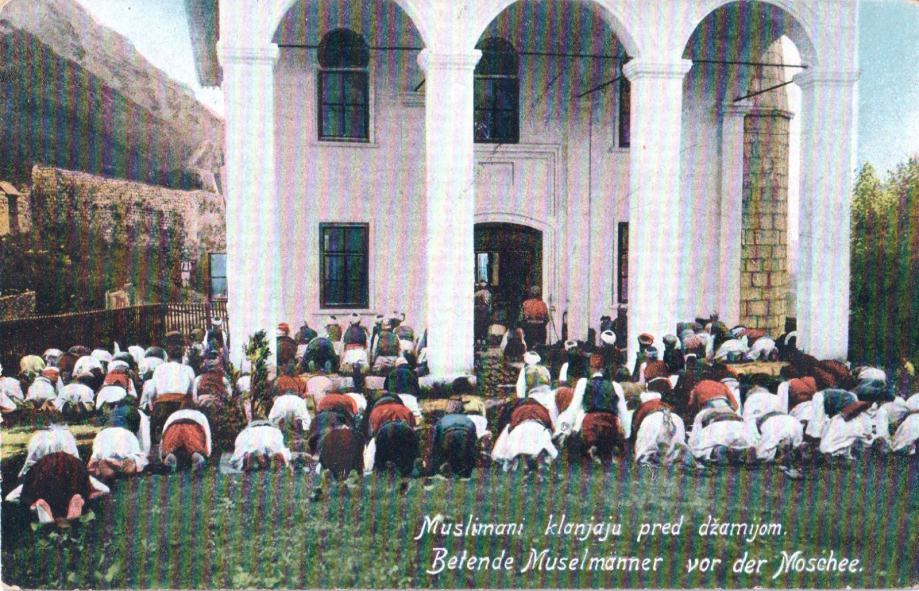 MUSLIMANI KLANJAJU PRED ĐAMIJOM - DOBOJ 3.8.1922 g