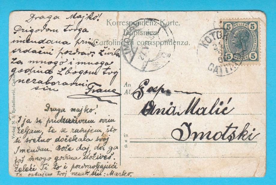 Stara austro-ugarska razglednica putovala 1906. godine iz Kotora u Imotski