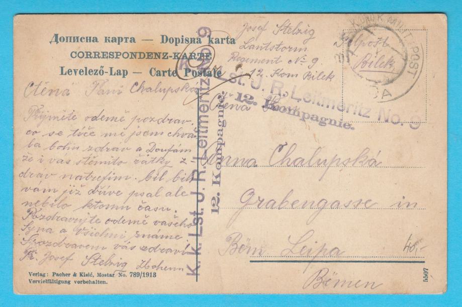 Prekrasna stara austro-ugarska razglednica sa žigom austro-ugarske cenzure (Bilek - Bileća).