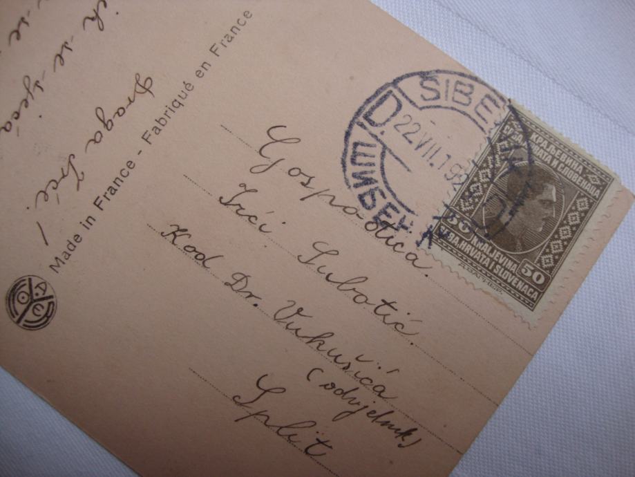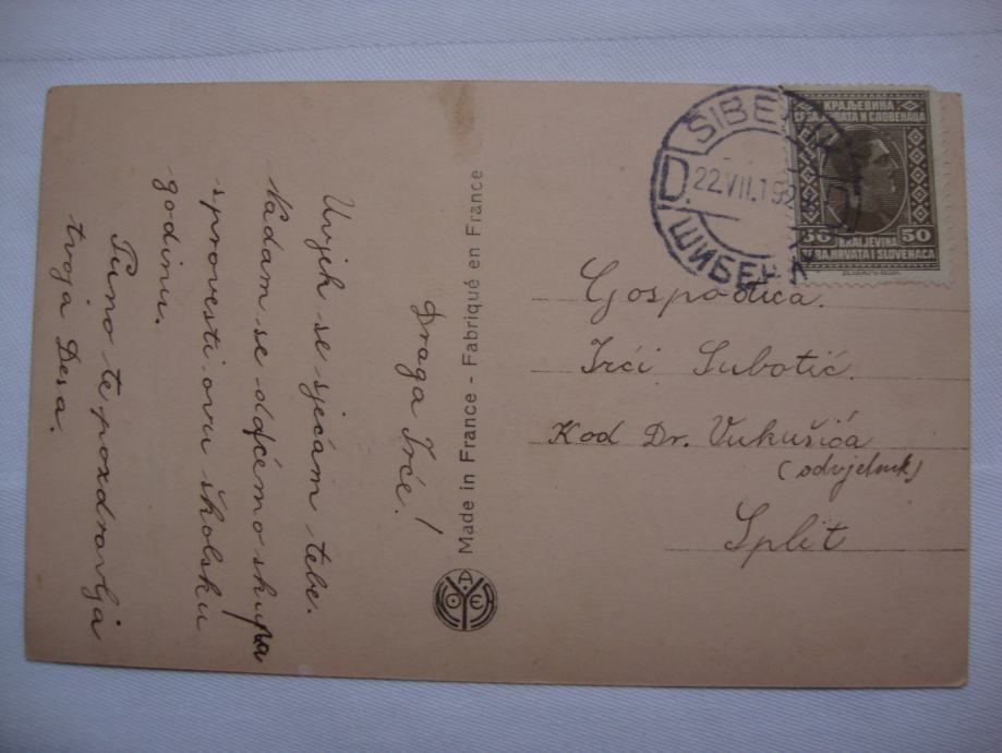 Stara umjetnička romantik francuska razglednica putovala 1928.godine 14/22 Šibenik -Split