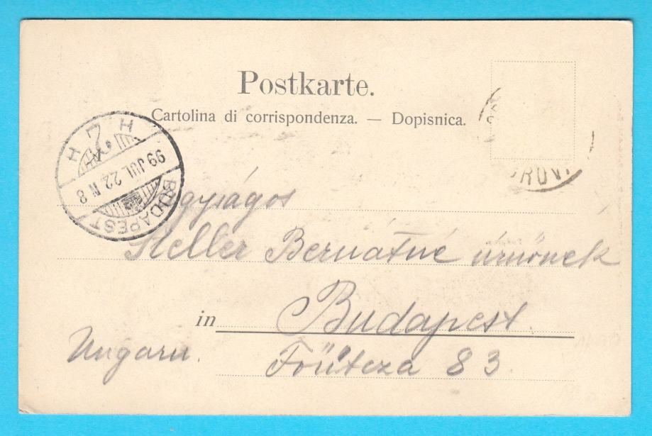 Stara austro-ugarska razglednica putovala davne 1899. godine u Budimpeštu.