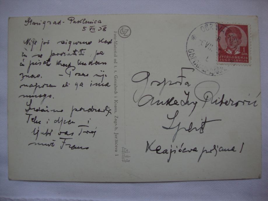 Stara crno bijela foto dopisnica brače knaus Zagreb putovala za Split 1938. godine