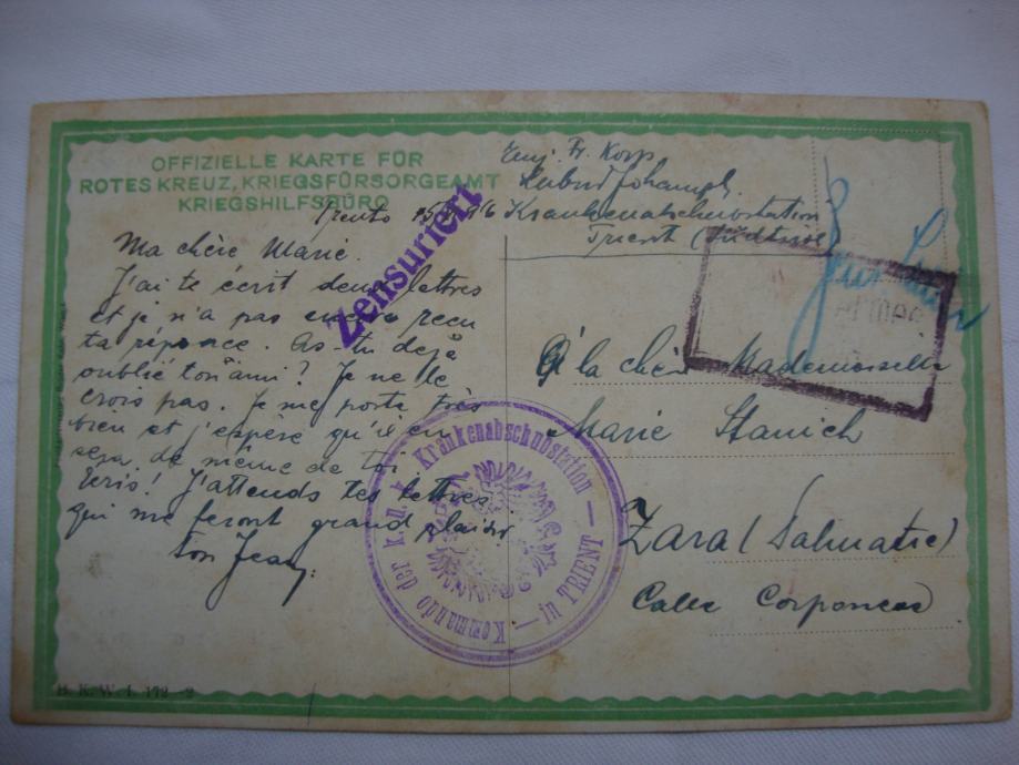 Dopisna karta sa 3 žiga ,K.u.K. žig + Zensuriert +