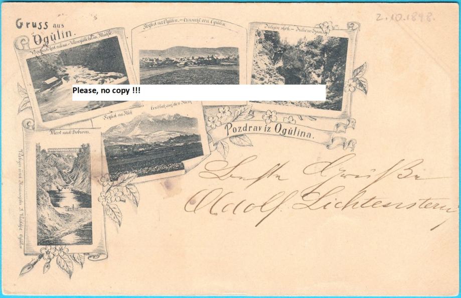 Prekrasna stara austro-ugarska razglednica Ogulina , putovala davne 1898. godine.