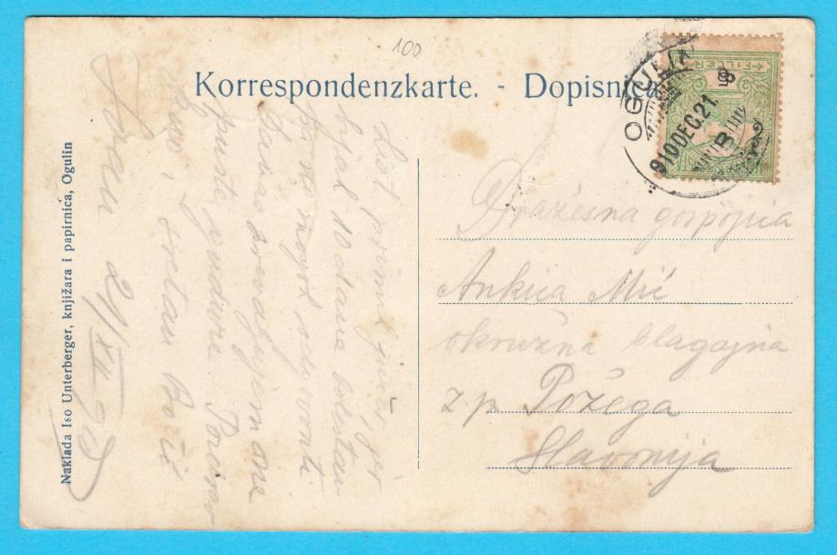 Stara austro-ugarska razglednica Ogulina, putovala 1910. u Požegu.