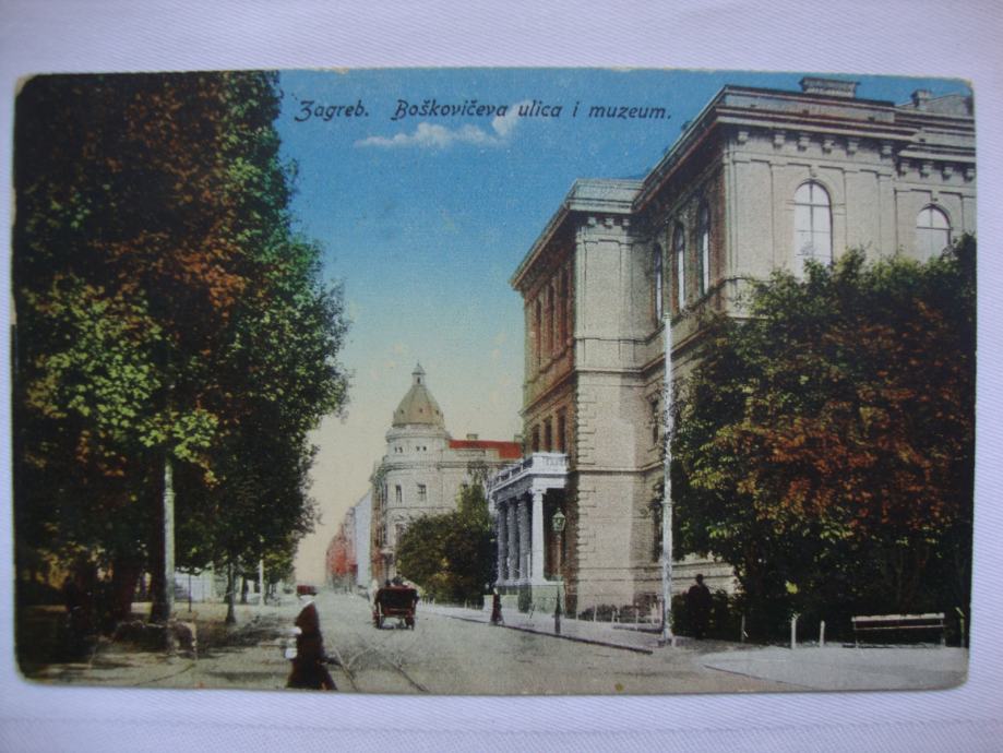 ZAGREB OLD POSTCARD 1913.-BOŠKOVIČEVA ULICA I MUZEUM-putovala
