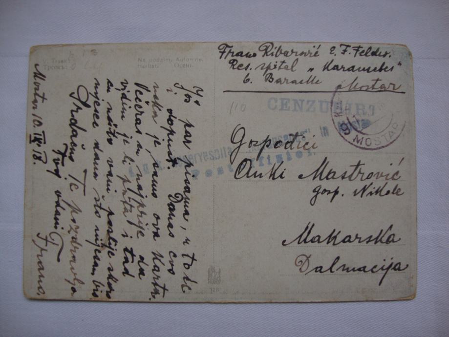 Stara razglednica putovala Mostar -Makarska 1918.godine