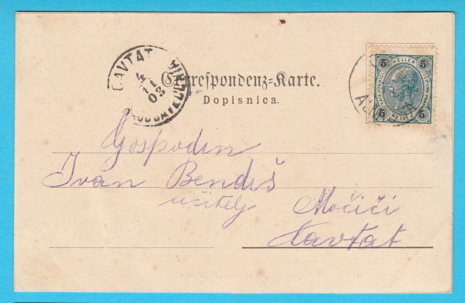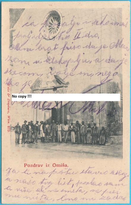 Stara austro-ugarska razglednica Omiša, putovala 1903. godine iz Omiša (Almissa) u Močići - Cavtat.