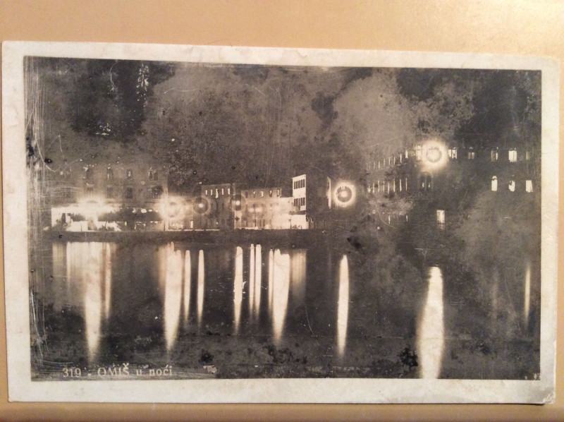 OMIŠ STARA RAZGLEDNICA GRAD PO NOĆI 1934.