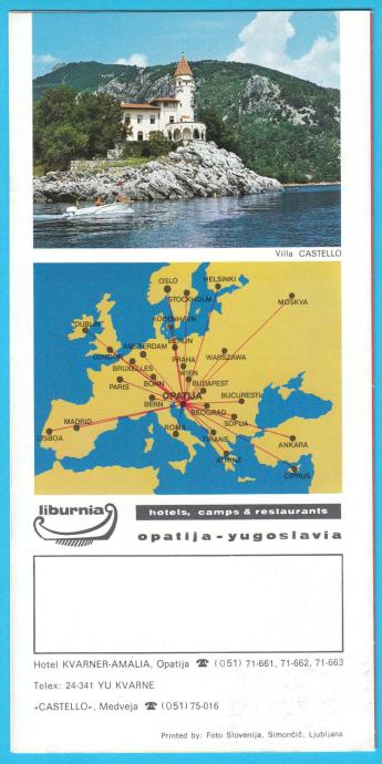 OPATIJA - HOTEL KVARNER AMALIA turistička brošura prospekt * Kvarner