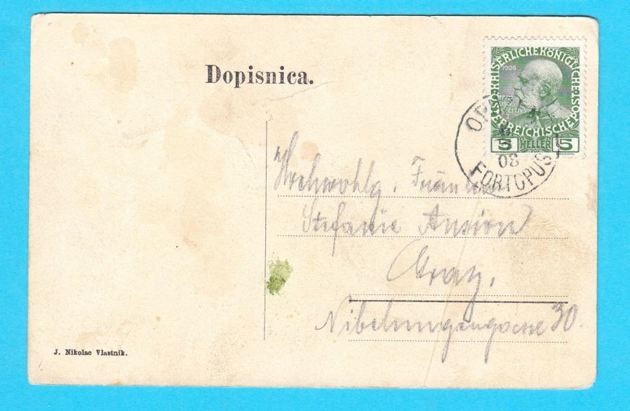 Stara austro-ugarska razglednica, putovala 1908. godine.