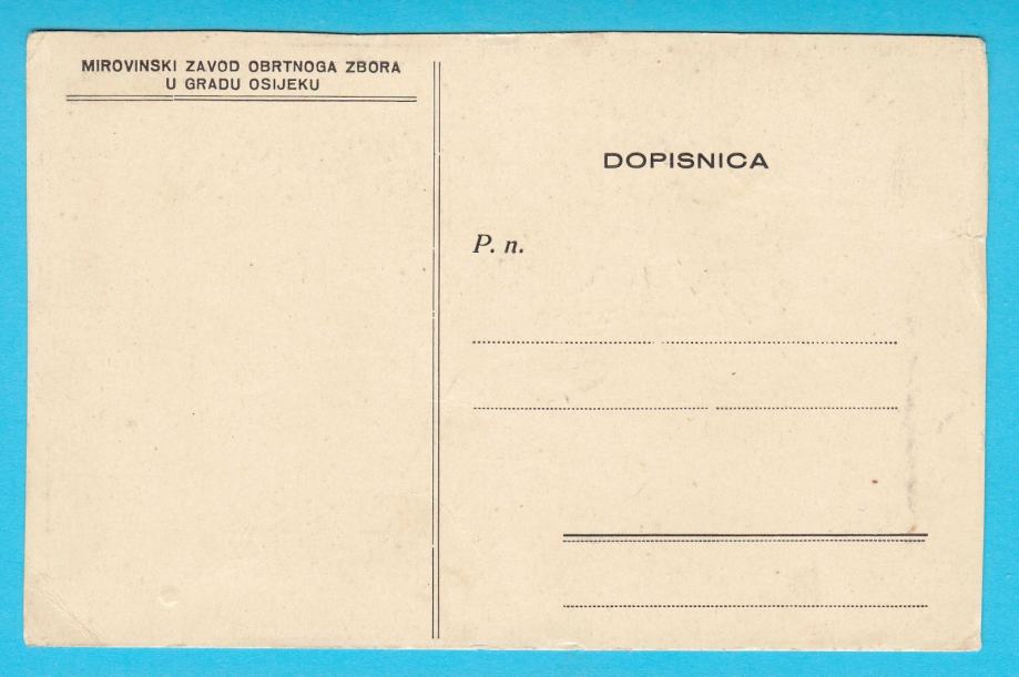 OSIJEK - MIROVINSKI ZAVOD OBRTNOG ZBORA U GRADU OSIJEKU - stara razglednica, nije putovala RRR