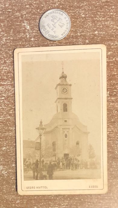 STANJE KAO NA SLICI. CRKVA KOJA JE STAJALA NA MJESTU DANAŠNJE KONKATEDRALE. CRKVA JE SRUŠENA 1894. I NA NJEZINOM JESTU POČELA IZGRADNJA NOVE CRKVE. JEDANA OD RIJETKIH FOTOGRAFIJA CRKVE. FOGOGRAFIJU JE IZRADIO POZNATI OSJEČKI FOTOGRAF GEORG KNITTEL.